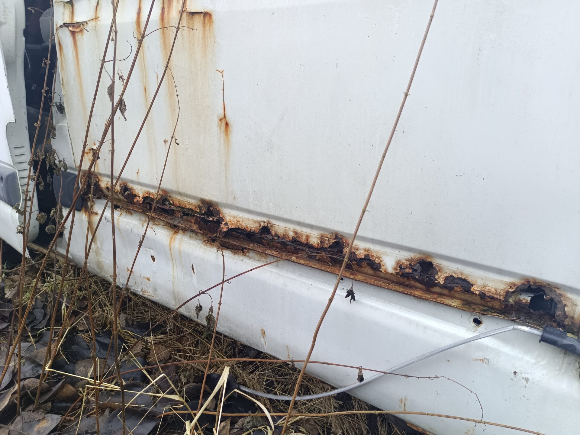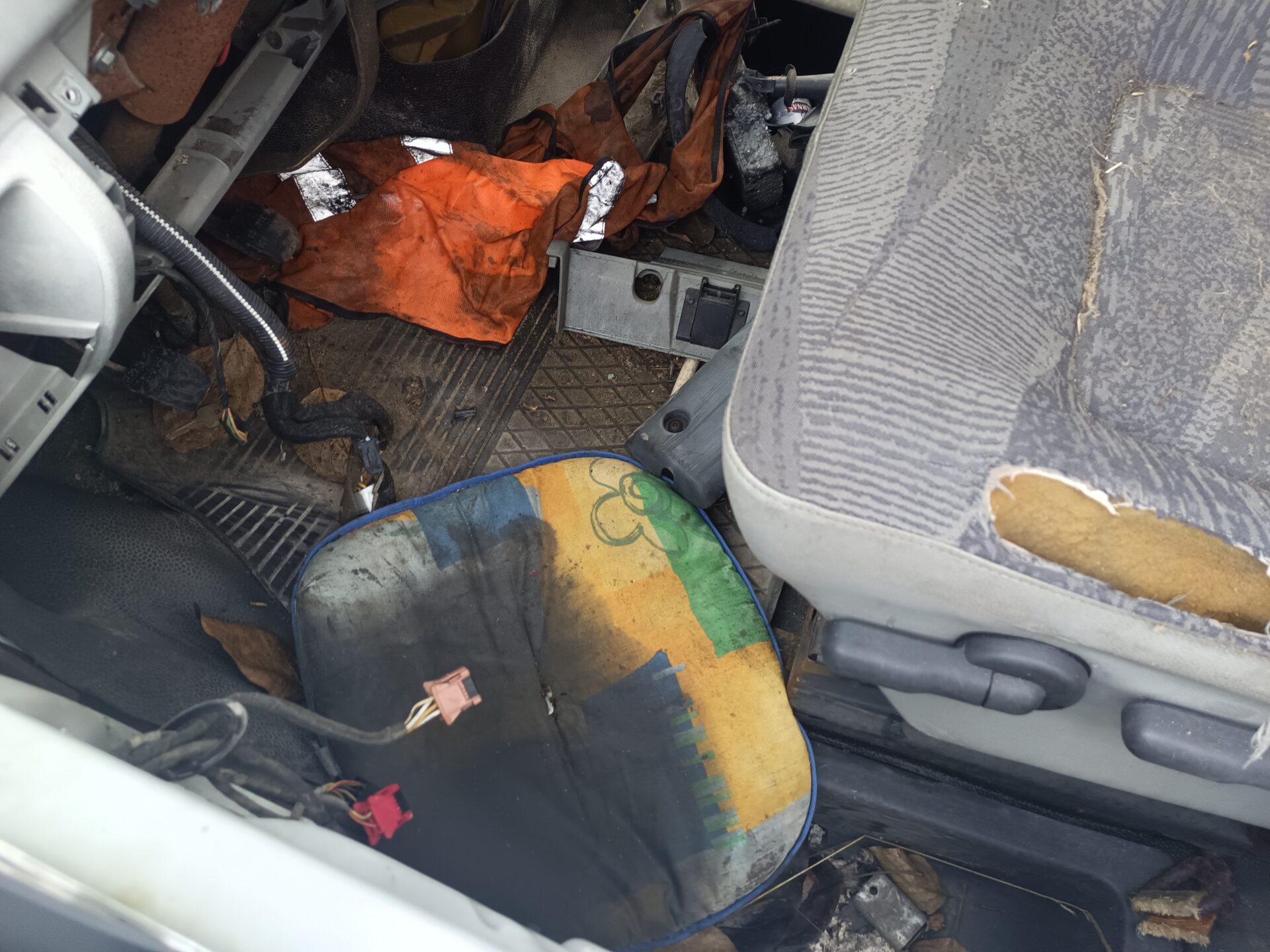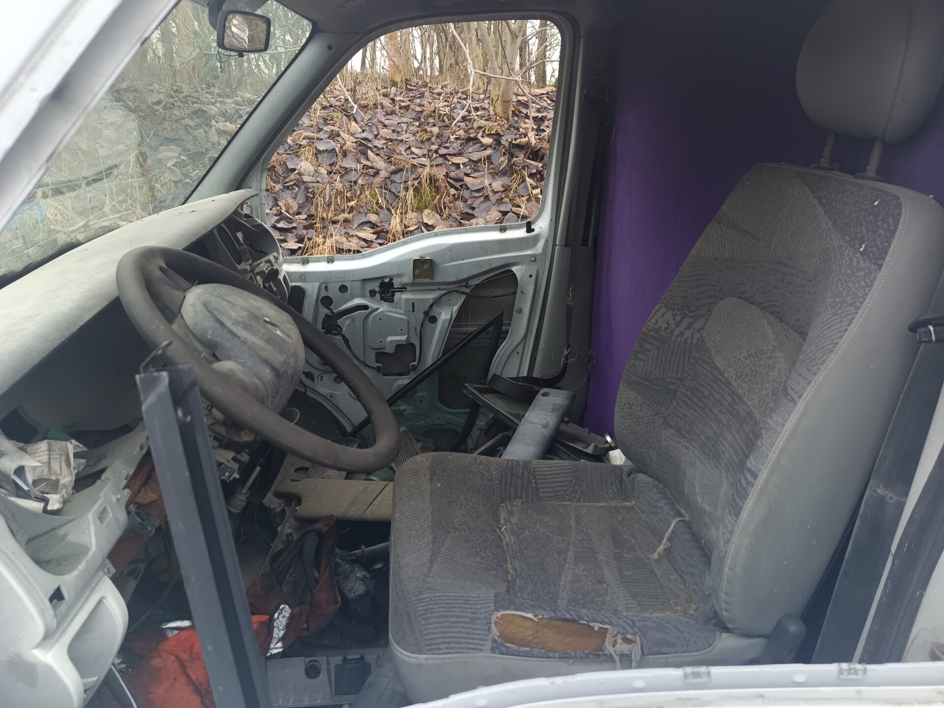 Ale ciężarowe opuszczone Volvo to nie jedyny pojazd który się tutaj znajduje. Idąc dalej znajdziemy opuszczony i rozbity samochód dostawczy jakim jest Renault Master. Co ciekawe na pace Renanult znajdziemy łódkę. Renault jednak zostało mocno już rozkradzione. We wnętrzu nie znajdziemy już prawie nic. Cały kokpit został rozebrany. Przełączniki powyrywane, szyby rozbite. Samochód już nie nadaje się do niczego poza zezłomowaniem.