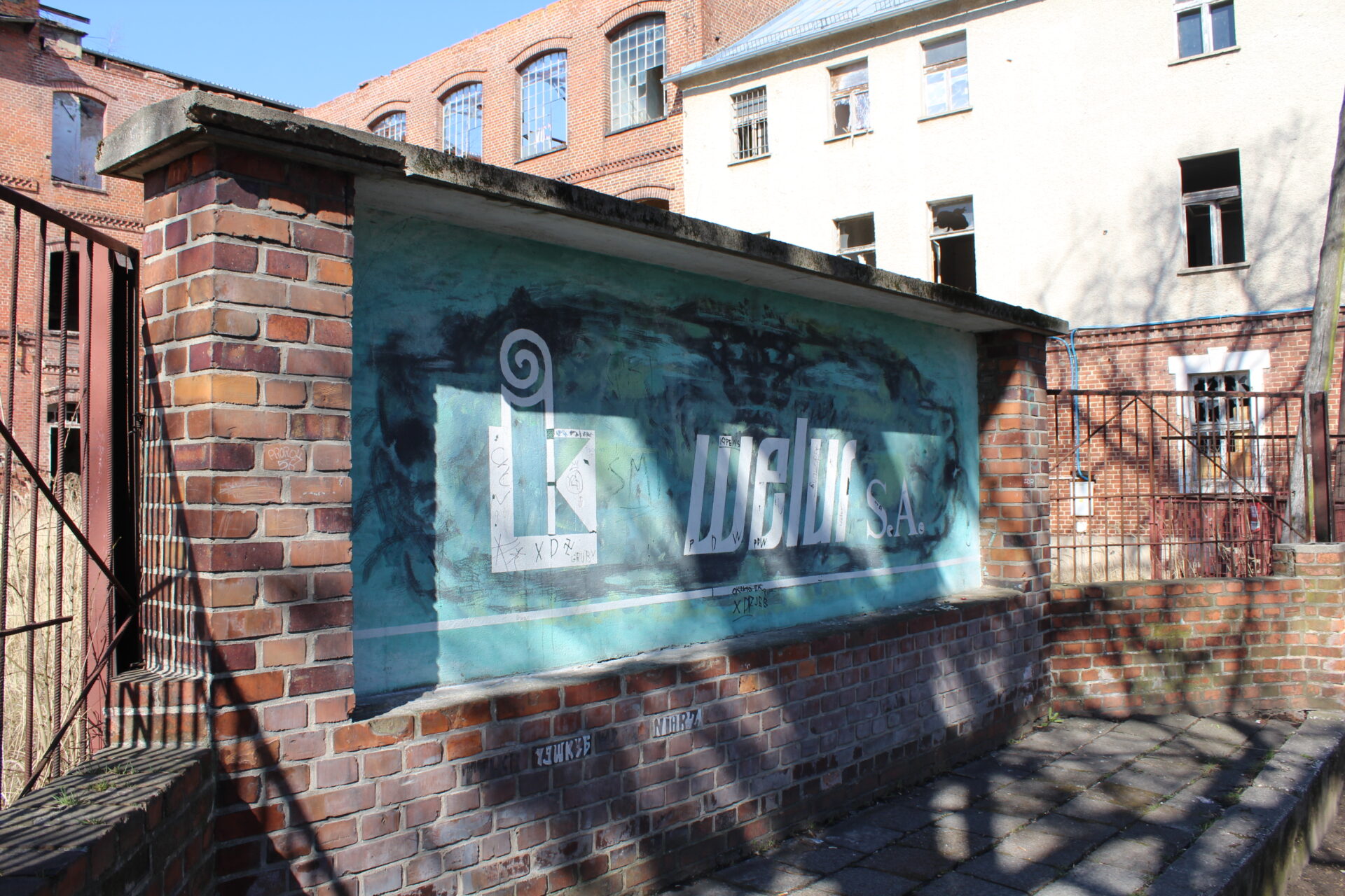Ciekawym elementem jest znak WELUR który znajduje się na przodzie placu. Pokazuje on historię zakładu i pozwala wyobrazić sobie jak wielki był to niegdyś zakład.