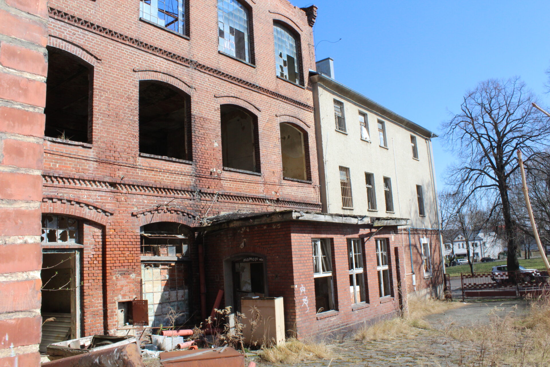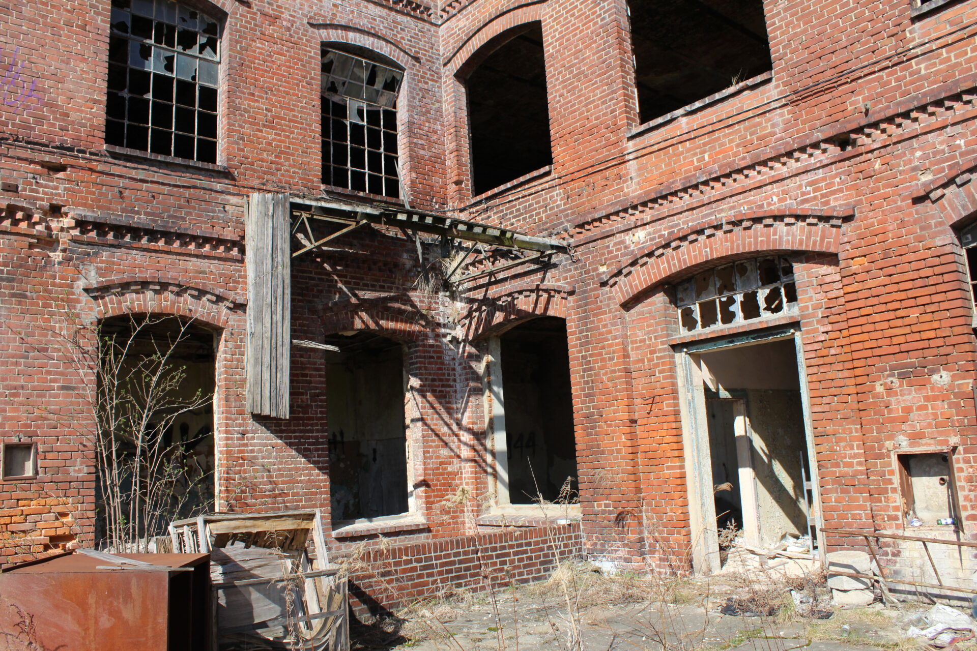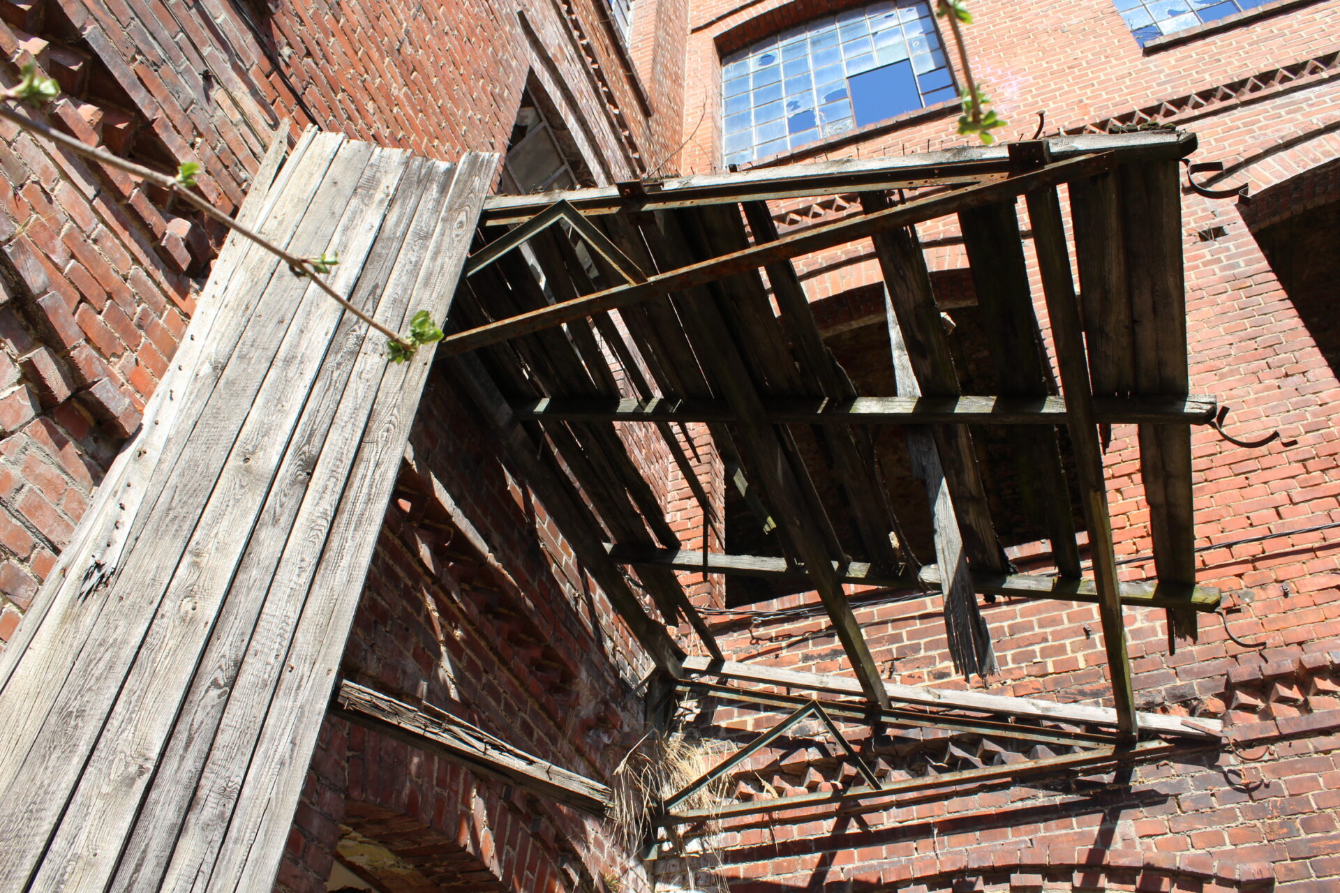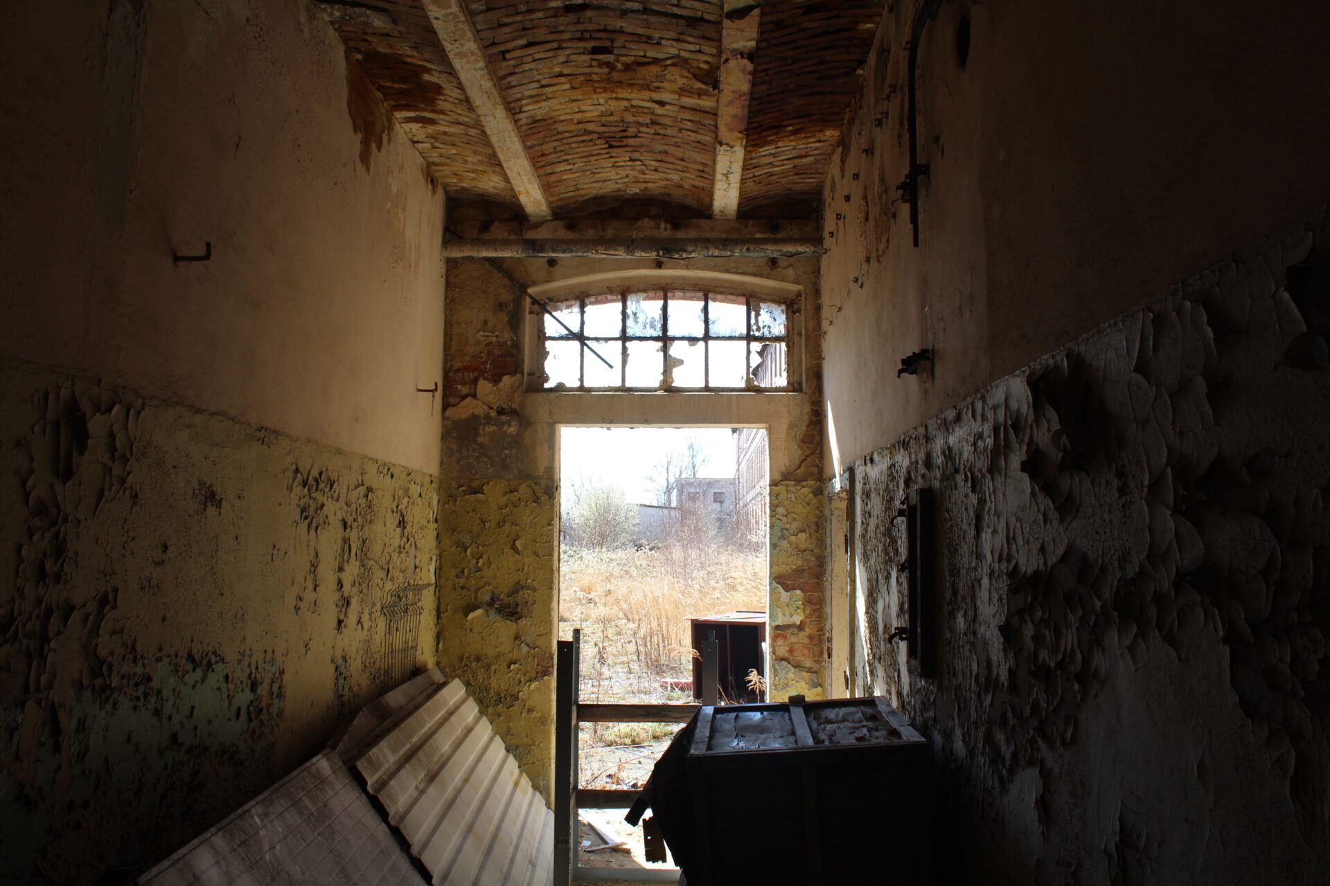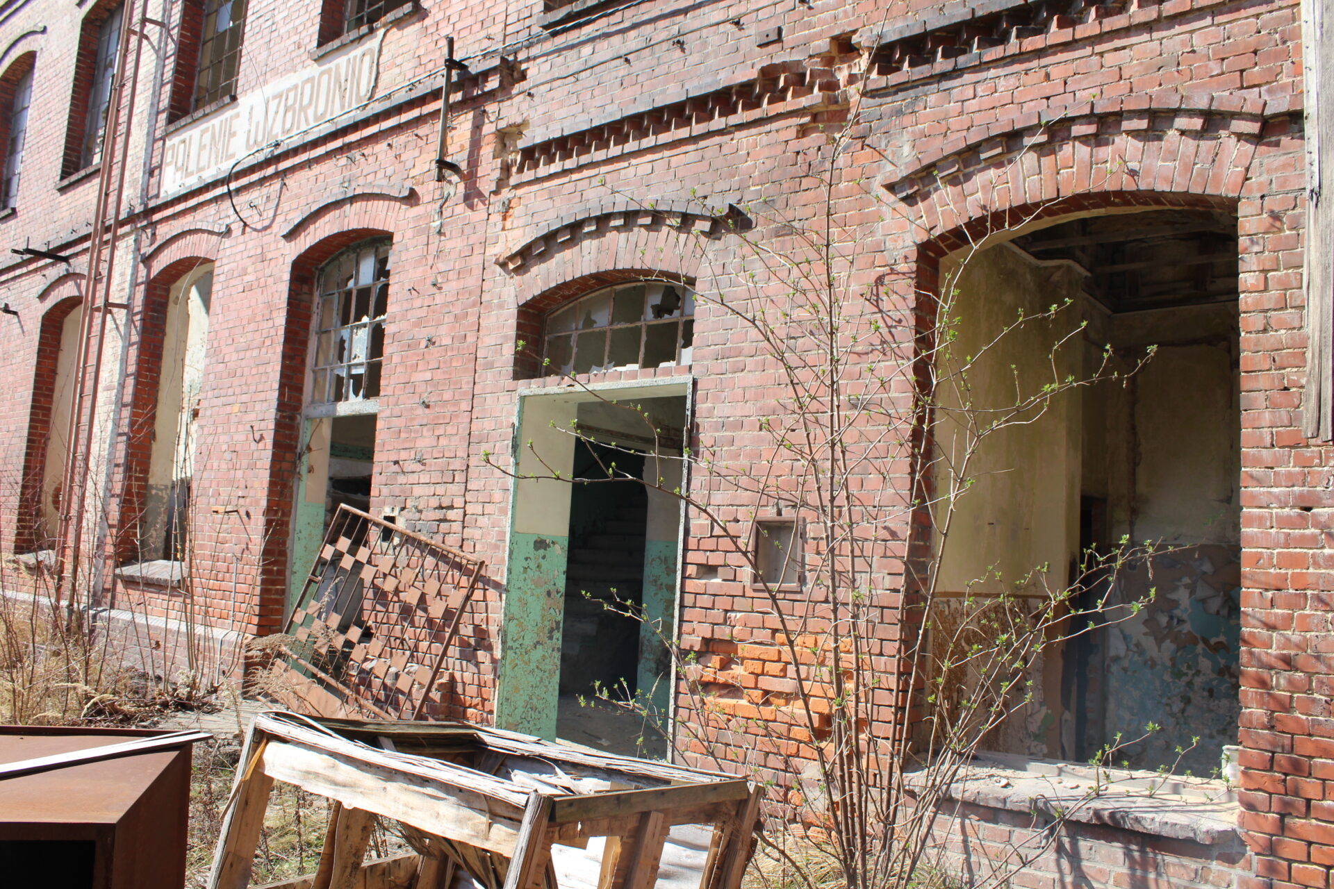 Niestety chodzenie po terenie zakładu jest bardzo ryzykowne ze względu na stan budynku. Dach jest na prawie całości zarwany, stropy pozapadane a metalowe belki konstrukcyjne wycięte przez złomiarzy. Wchodząc do środka mamy wiszące nad nami deski i inne elementy konstrukcji które dosłownie odpadają. Gdy zawieje wiatr słyszymy jak cała konstrukcja trzeszczy.