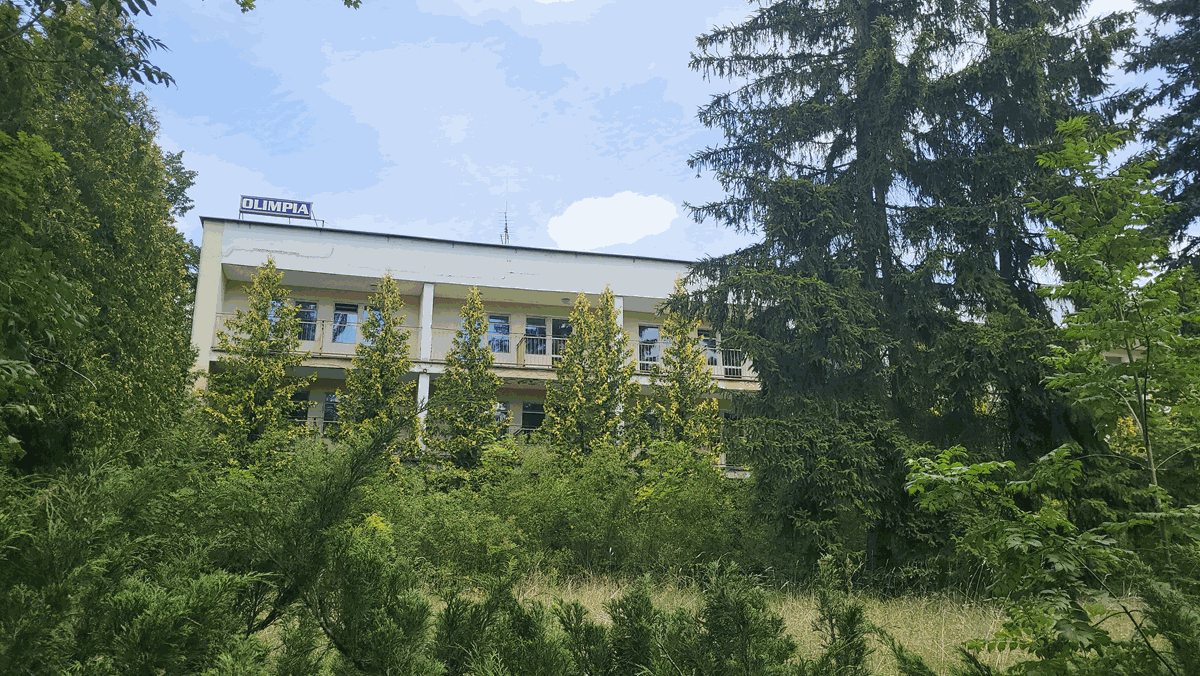 Niegdyś ogromny ośrodek wyposażony w setki pokoi, salę treningową oraz ogromną restaurację. Przyjmujący setki turystów, organizujący szkolenia dla Policjantów. Wyposażony w domki, pokoje, apartamenty oraz ogromne obejście na którym znajdziemy liczne posągi, ławeczki, mola oraz prywatną plażę nad jeziorem.