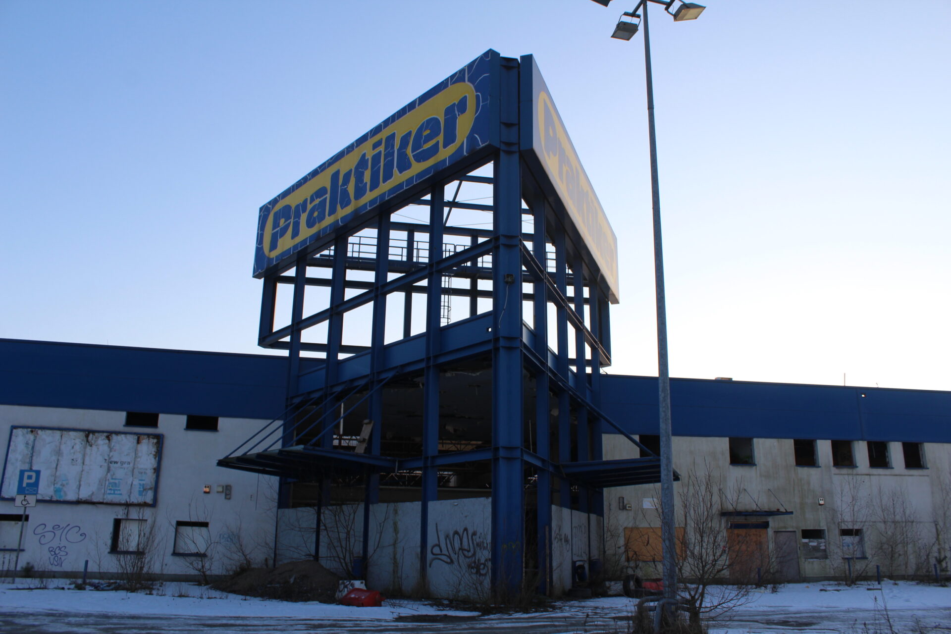 Dziś zabieram was na eksplorację opuszczonego sklepu Praktiker w Rybniku. Sklep ten działał do 2017 roku, a jego lokalizacja pośród innych wielkich sklepów sprawiała że zawsze był pełny klientów a parking przepełniony, Znaleźć tu można było między inny artykuły budowlane i ogrodnicze. Sklep miał wielka powierzchnię co zapewniało dobrą dostępność towarów od ręki. Niestety w 2017 roku został zamknięty i szybko zainteresowali się nim złodzieje i złomiarze. Dziś mija już 9 lat od jego zamknięcia, a stan sklepu jest przerażający. Co prawda konstrukcyjnie jest w bardzo dobrym stanie jak na lata w których stoi opuszczony jednak wszystkie szyby i witryny zostały rozbite, drzwi automatycznie otwierane wyrwane, kurtyny powietrzne i wszystkie elementy wentylacji rozkradzione a to co zostało jak np. łazienki czy ściany z płyt gipsowych całkowicie zniszczone. Nawet metalowe schody na magazynie zostały wycięte…