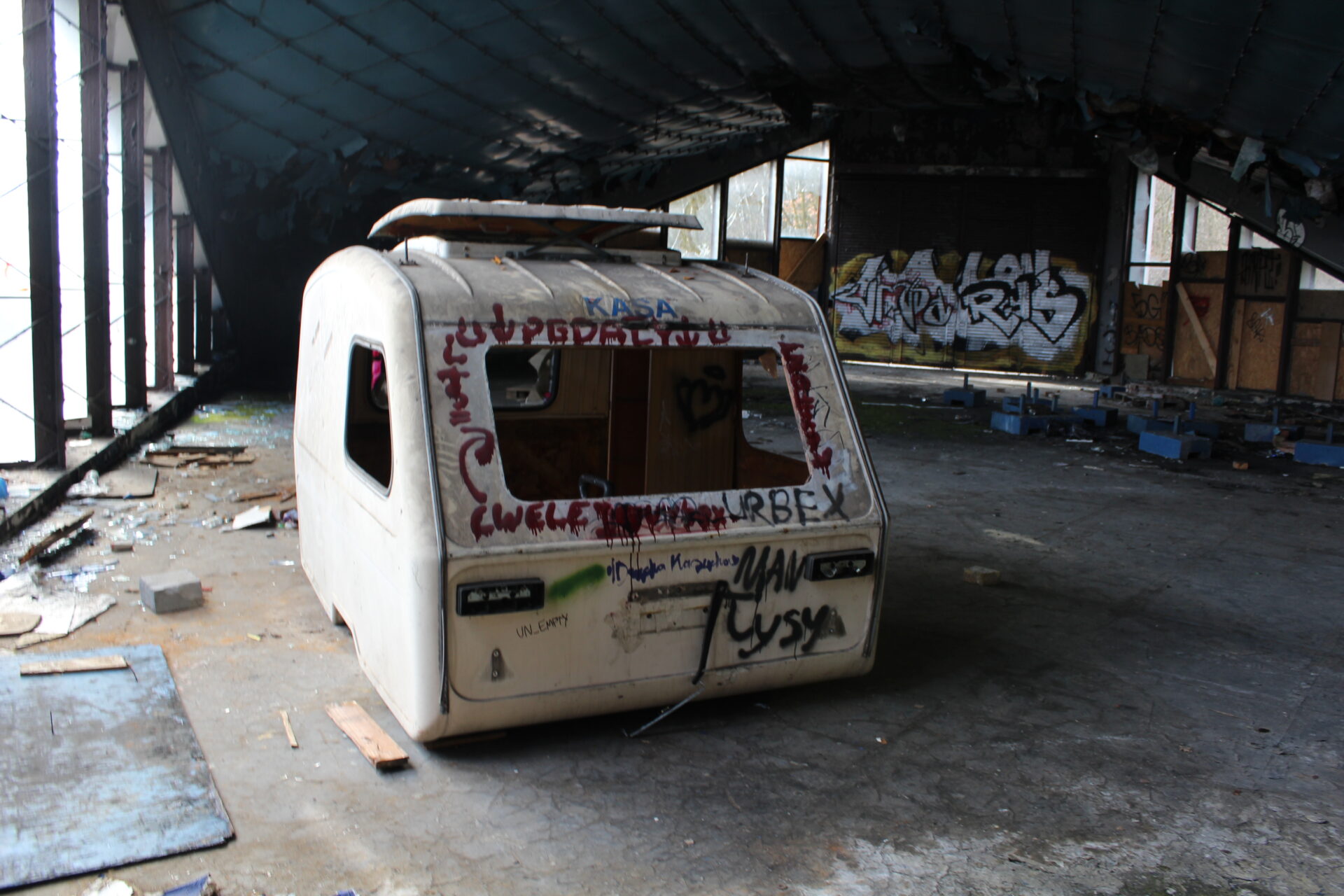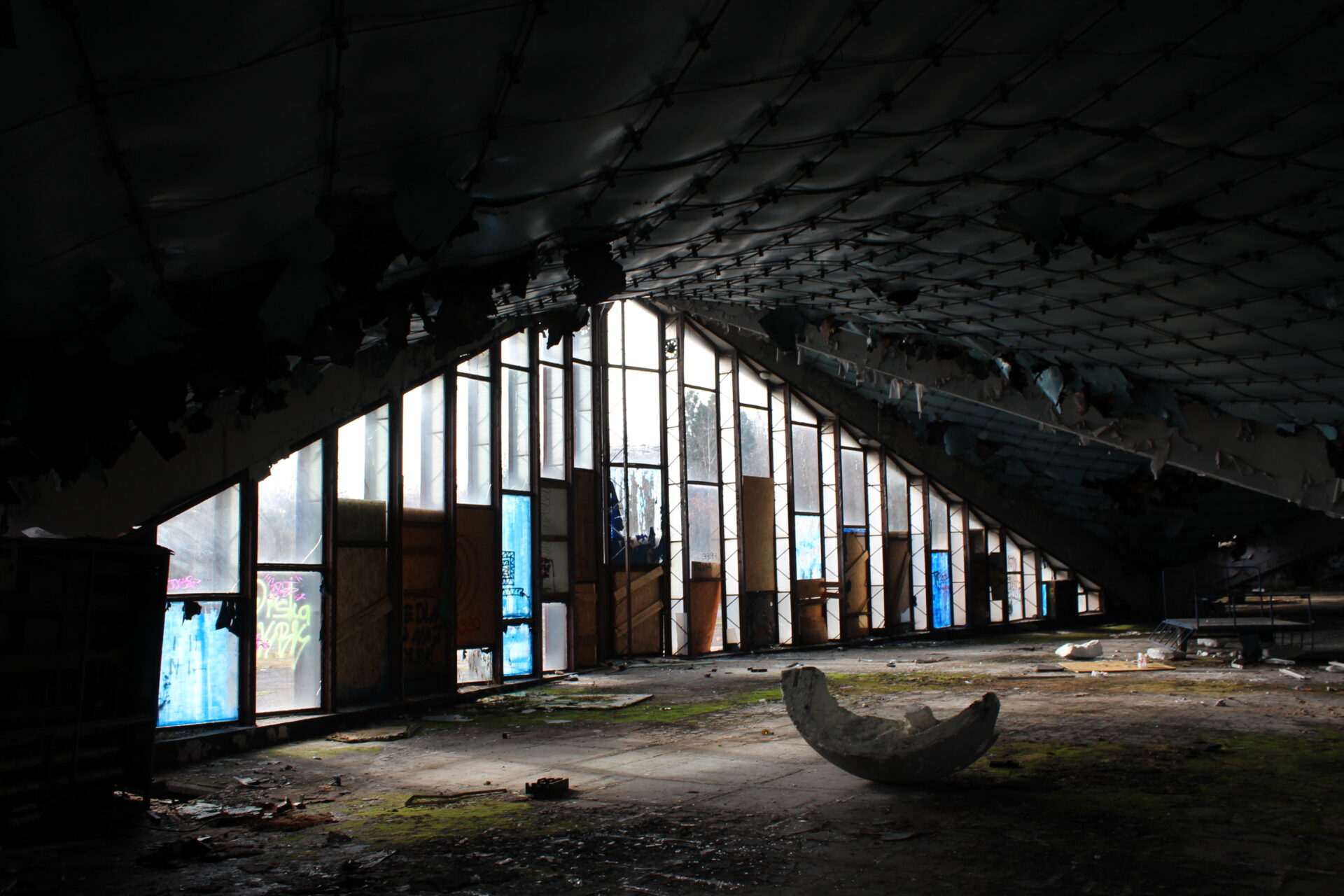 Dziś zabieram was do Katowic na teren Międzynarodowych Targów Katowickich! To tutaj w 2006 roku zawaliła się hala podczas wystawi gołębi i zginęło tutaj 65 osób a ponad 170 zostało rannych. Hala która się zawaliła została od razu zrównana z ziemią, a na jej miejscu został pusty teren, pozostałości cegieł i konstrukcji oraz pomnik ofiar katastrofy. Katastrofa ta była uznana za największą katastrofę budowlaną w Polsce! Hale te zostały oddane do użytku w 2000 roku, a już w 2002 pojawiły się pierwsze problemy. Hale te od początku były źle skonstruowane, a ciężki śnieg zalegający na dachu budynku dołożył swojego ciężaru co spowodowało że hale zawaliły się jak domek z kart. Do dnia dzisiejszego pozostały kilka hal które stoją puste i niszczeją a ryzyko ich zawalenia z dnia na dzień jest coraz większe. Na terenie MTK znajduje się wiele budynków po biurach które z roku na rok były opuszczane przez działające tutaj firmy. Jedne budynki zostały opuszczone zaraz po katastrofie w 2006 roku inne w 2013, a niektóre biura działały aż do 2025 roku.