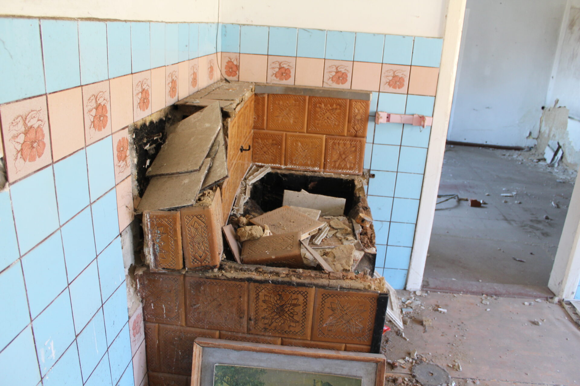 Co więcej w domku znaleźliśmy stary obraz, piec kaflowy oraz łazienkę do której trzeba dosłownie przykucnąć żeby wejść do drzwi.